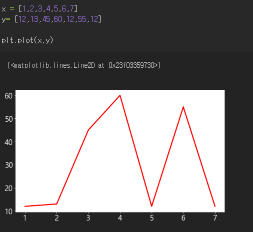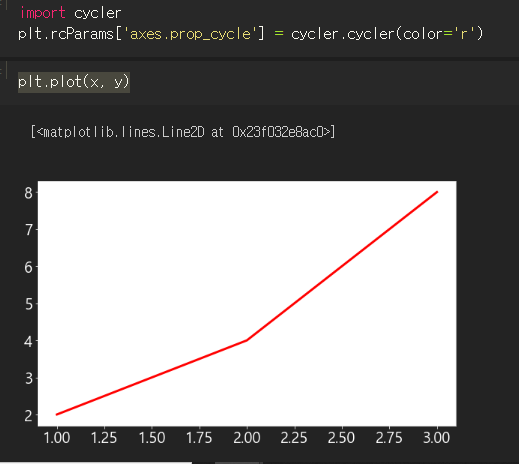 rcParams는 전역설정이라 다른 그래프도 그려봤는데 역시 빨간색으로 잘 나온다.
