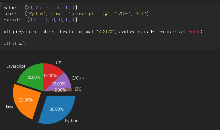 labels = ['Python', 'Java', 'Javascript', 'C#', 'C/C++', 'ETC']