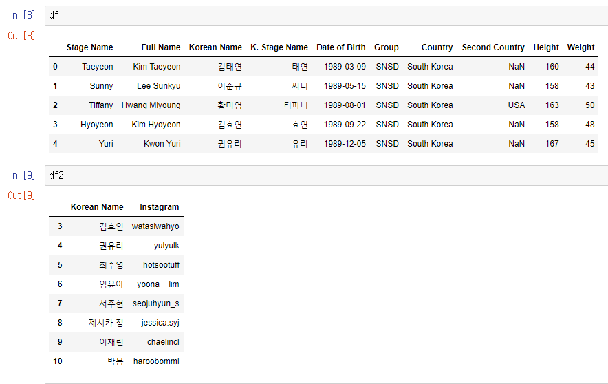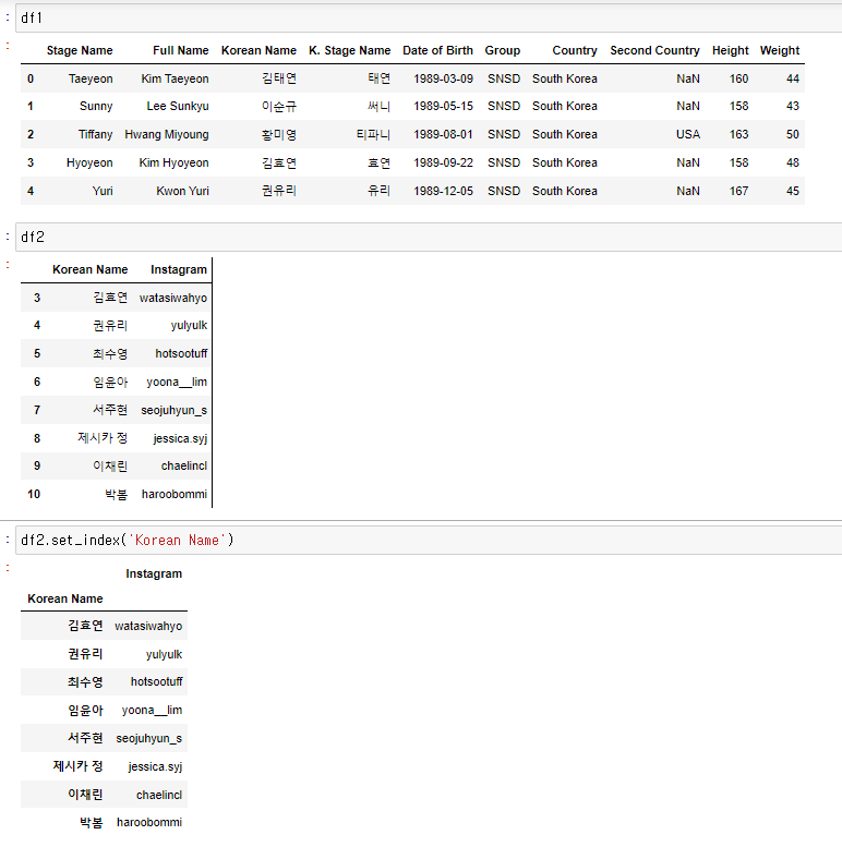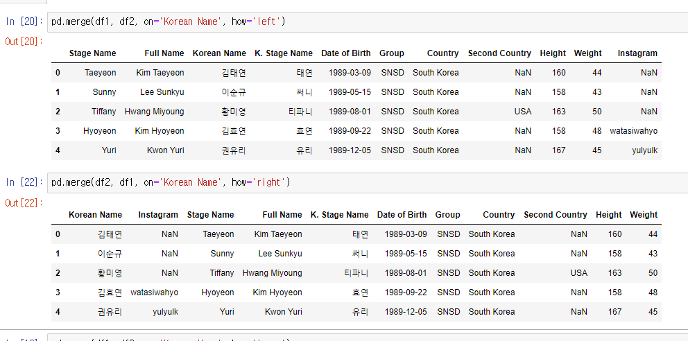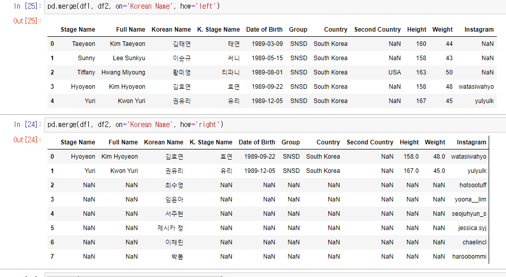 둘다 df1중심이라 결과는 같을것 같지만 자세히보면 column순서가 바뀐다.
