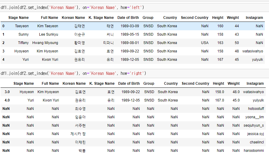 밑에보면 하나는 df1,df2 left고 나머지 하나는 df2, df1 right다