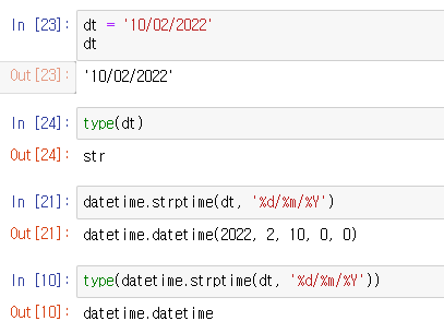 strptime은 string ---> datetime 전환시켜준다