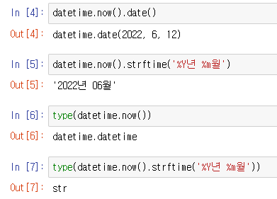 datetime.now()는 datetime형식이였는데 '2022년 06월' 처럼 string으로 바뀌었다.