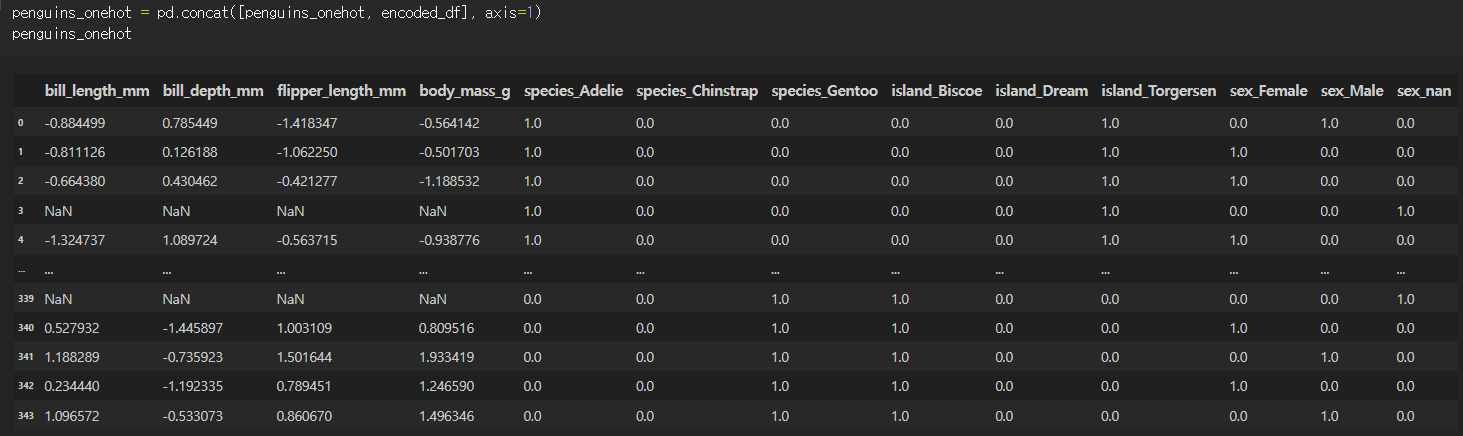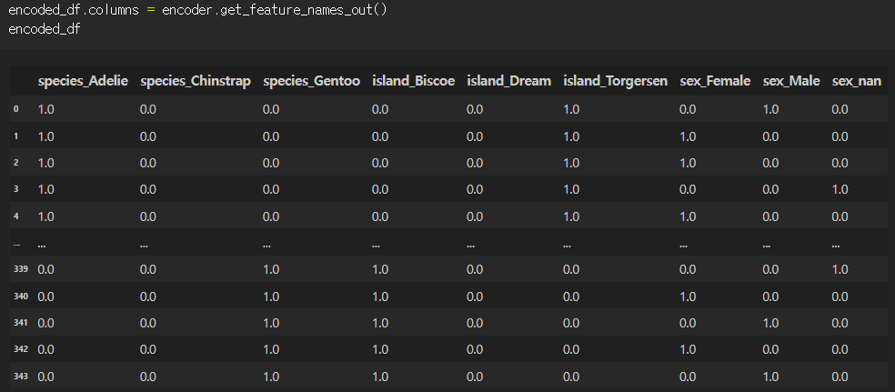 예를 들면, 성별에 (남, 여)가 있었다면 성별_남 column , 성별_여 column 이런식으로 column을 2개로 만들어버린다.
