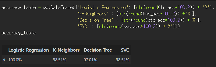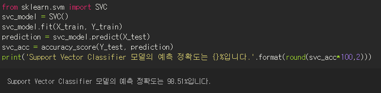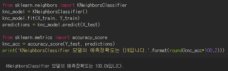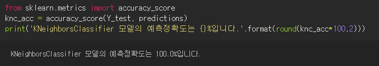 from sklearn.metrics import accuracy_score <- 이거는 위에서 했으니 사실 빼도된다.