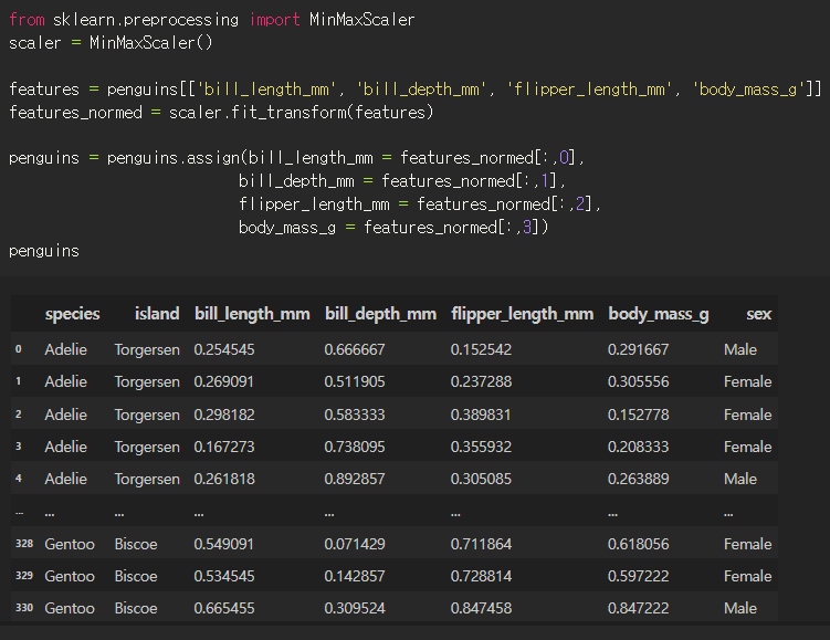 강의에서 정규화로 스케일링하길래 정규화로 먼저해봤다.