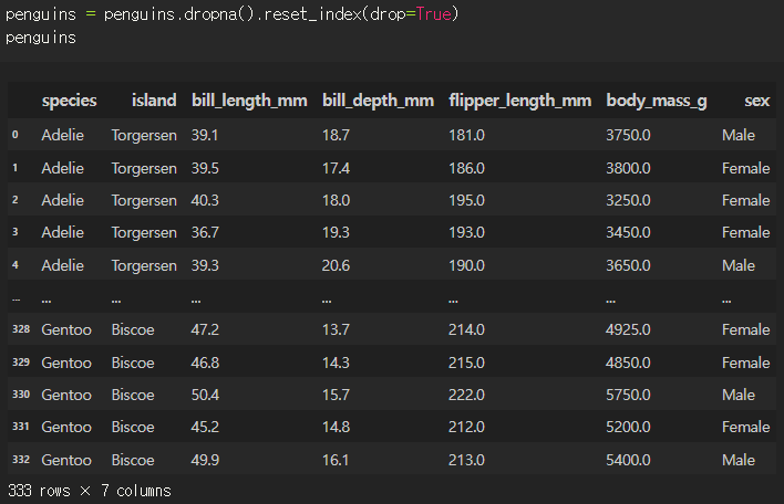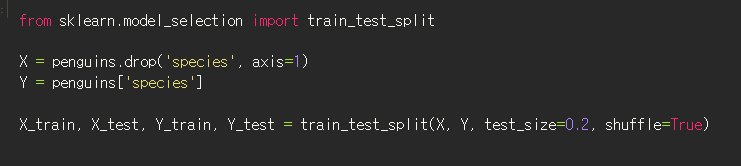 sklearn에서 제공하는 penguins 데이터로 해봤는데 99%정도 맞추고 무당수준인데 seaborn으로 그래프를 그려보면 감이온다.