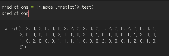 predictions : X_test데이터를 기반으로 한 Y의 예측값
