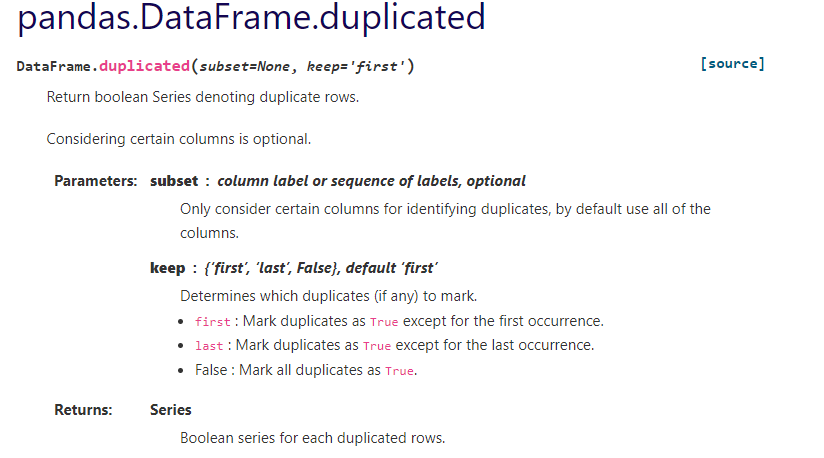 https://pandas.pydata.org/docs/reference/api/pandas.DataFrame.duplicated.html