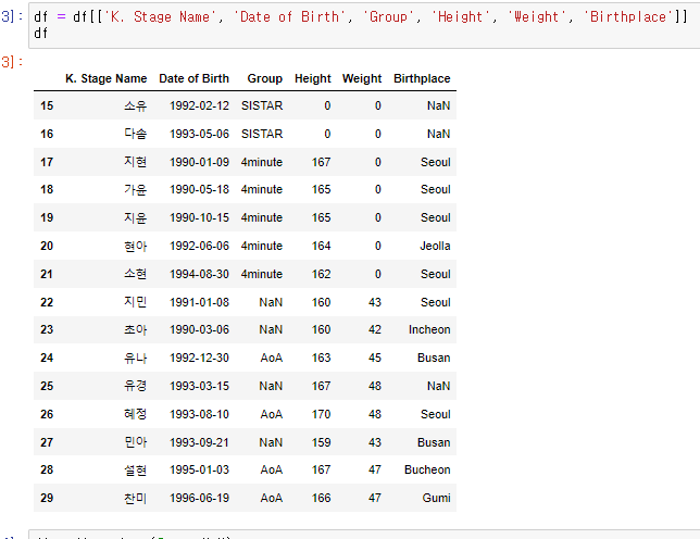 +++ 원래 dropna는 NaN이 하나라도 열에 있으면 열하나를 통째로 삭제하는데