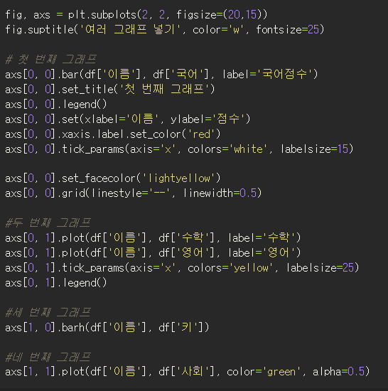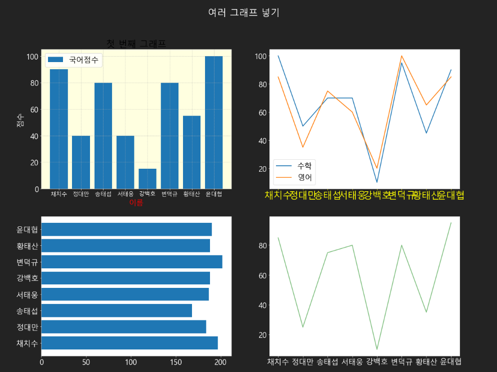 fig.suptitle('여러 그래프 넣기', color='w', fontsize=25)